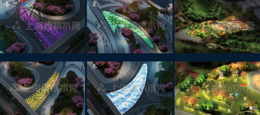 公园内重要节点-假山跌水、假山灯光、矩阵、互动波光